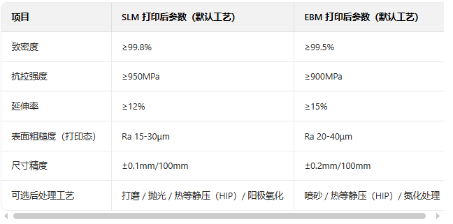 3. 3D 打印的 TC4 零件组织晶粒更细化,各向力学性能差异≤5%(传统锻件可能存在各向异性)。